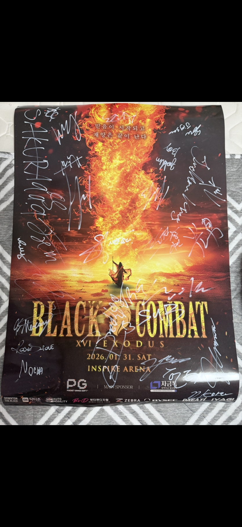 헌터 박종헌 붉은매 지혁인 코리안 불도저 남의철 등등 그 외 19명의 선수 사인과 블랙컴뱃 대표 검정(박평화)님 사인까지 총 31명의 사인이